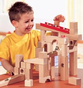 Der Klassiker mit System! Der große Bausatz von HABA mit 42 massiven Buchenholzteilen und 6 Glasmurmeln bietet kleinen Baumeistern unzählige Möglichkeiten, ihre eigene Kugelbahn zu entwerfen. Somit wird neben den motorischen Fähigkeiten die Kreativität Ihres Kindes gefördert. Weiß der Bauleiter einmal nicht weiter, kann er sich in der beiliegenden Anleitung Anregungen holen.