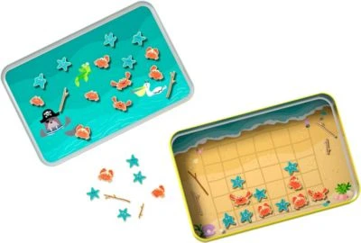 Das 4 am Strand, Reisespiel von Haba ist eine tolle Variaten des bekannten „Vier-Gewinnt“-Spiels, die garantiert Urlaubsstimmung aufkommen lässt. Die fröhlichen Krabben und Seesterne machen gute Laune. Da es in einer Metalldose kommt, ist das Spiel auch toll für unterwegs und bietet Spielspaß am Strand ebenso wie während der Zugfahrt.