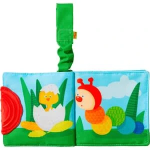 Hier gibt es viel zu entdecken: Das Stoffbuch Regenbogen-Raupe von HABA spricht mit seiner vielseitigen Gestaltung alle Sinne der Kleinen an. Die liebevollen Bilder in kräftigen Farben regen sie zum „Plaudern“ an. Buggybuch Regenbogen-Raupe ab 6 Monaten zum Befestigen an Buggy, Kleidung und Bettchen mit Beißelement Mit der Klettschlaufe lässt sich das weiche Buch leicht am Buggy, an der Kleidung oder am Bettchen befestigen. Und weil Babys die Welt nicht nur mit ihren Händen, sondern auch mit ihrem Mund entdecken, hat das Buggybuch Regenbogen-Raupe an einer Seite ein Beißelement. Damit es immer eine saubere Sache bleibt, lässt sich das Buggybuch bei 30 °C im Schonwaschgang waschen.