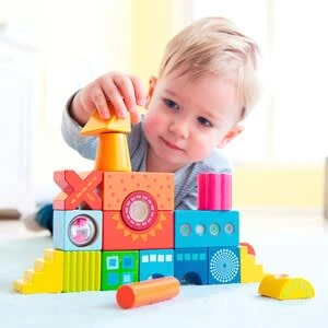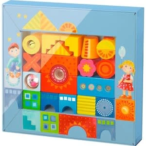 Mit den HABA-Bausteinen Kunterbunt bauen sich kleine Stapelkünstler ihre Welt, wie sie ihnen gefällt! Das Ergebnis: spektakuläre Türme, waghalsige Häuser oder auch mal eine wackelige Villa. Später wird alles umgeworfen, nur um den Stapelspaß von vorn zu beginnen. 21 Bausteine Kunterbunt ab 18 Monaten aus Holz, Kunststoff und Metall mit tollen optischen und akustischen Effekten Die unterschiedlichen Effekte – Glöckchen, Durchguck, Klapperkugel – sind für kleine Weltentdecker genau das Richtige und regen alle Sinne an. Ob Farben, Formen, Muster oder Geräusche, überall gibt es etwas zu schauen, zu hören oder zu erfühlen. Die 21 Bausteine Kunterbunt sind genau das Richtige für kleine Baumeister ab 1,5 Jahren und ein Geschenk, das Kinderaugen zum Leuchten bringt!