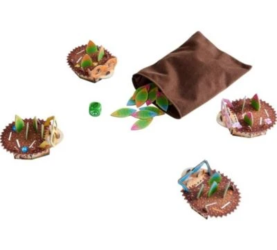 HABA Igelfreunde – Auf farbenfroher Blättersuche. Heute verkleiden sich die Igelkinder: Große Stacheln in ihrer Lieblingsfarbe wollen sie haben Dafür müssen die Spieler Blätter in der richtigen Farbe aus dem Laubbeutel ziehen. Aber Vorsicht: Die Pustewolke kann das ganze Laub gehörig durcheinanderwirbeln und bereits sicher geglaubte Blätter fliegen wieder davon Der Spieler, dessen Igel zuerst vollständig mit Blättern seiner Farbe geschmückt ist, gewinnt.
