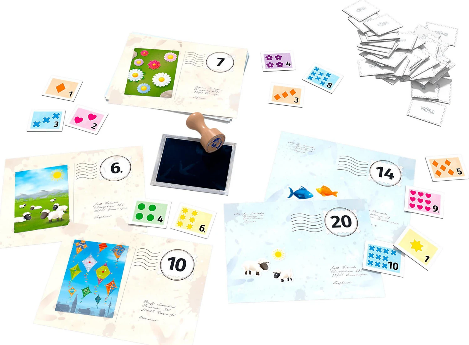 Welche Marken braucht der Brief? Pio Posttaube von HABA ist ein spannendes Postspiel und ein cleveres Rechentraining für Kinder ab 5 Jahren. Zum Frankieren der hübschen Briefe und Postkarten müssen die unterschiedlichen Marken kombiniert werden. Bei dem Additionsspiel gewinnen Kinder schnell Sicherheit im Zahlenraum bis 20. Wer die meiste Post richtig frankiert, gewinnt das farbenfrohe Rechenspiel. Einfach genial – HABA!